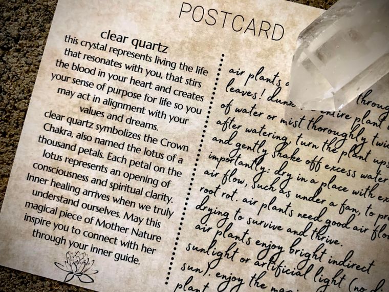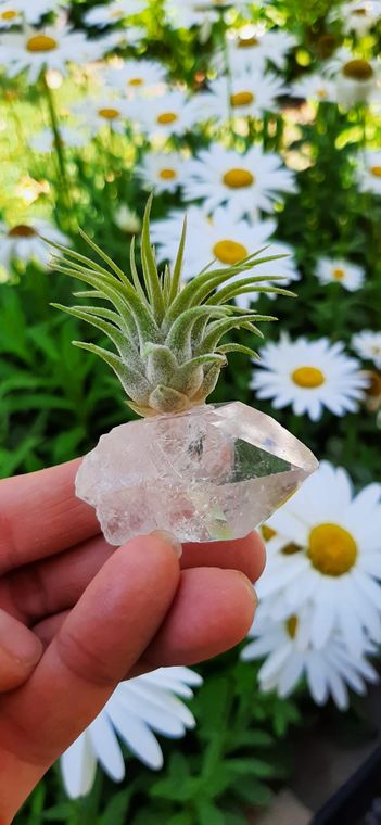 This listing is for an air plant adhered to a small clear quartz crystal. Clear quartz represents clarifying your dreams and desires to manifest the life that resonates with you, that stirs the blood in your heart, that creates your sense of purpose, and that flames your soul.
