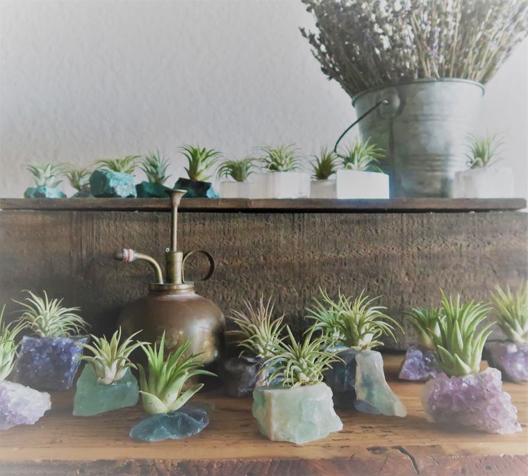 Just as what we see in nature varies, you will see some variations in sizes, colors, and shapes of air plants and gemstones.